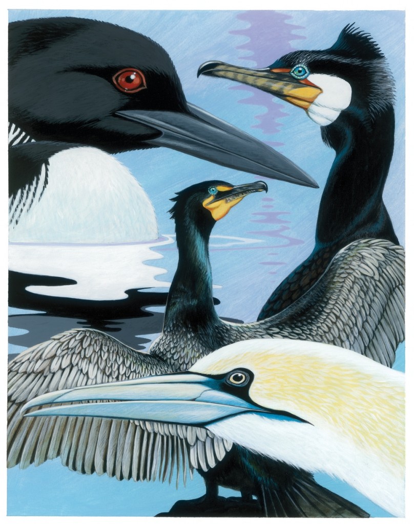 I measured captive birds, estimated the sizes of wild birds visually, and painted them life-size. It is one of my most ambitious books. The Audubon inspiration was just what I needed to make the book special to me. Since, like Audubon, I am also self- taught in the sciences and art and have learned most of what I know from my own observations and personal experiences in the wild.