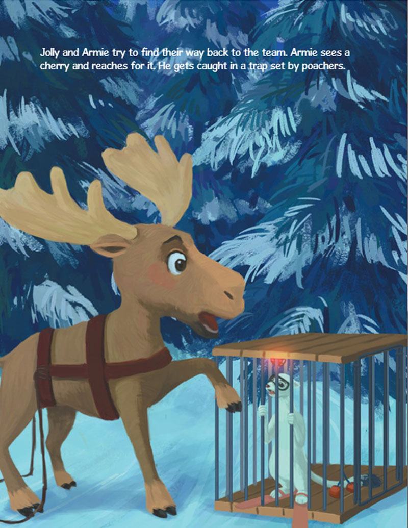 Jolly’s Christmas is the story of a young moose who dreams of flying like a reindeer. A talented athlete, Jolly dreams of leading his team to victory in the North Pole Winter Wonderland Games. However, to realize his dreams Jolly will face challenges beyond anything he might have imagined. From sabotage by other athletes to an unexpected attack by vicious poachers, Jolly encounters set-back after set-back as he tries to pursue his dream of flying. However, when a daring leap to freedom leaves him paralyzed in both back legs, Jolly comes to understand that the greatest challenge will come not from others, but from himself. Can Jolly find the strength and determination to follow his heart? In this heartwarming Christmas tale, everything depends on Jolly believing in himself.
