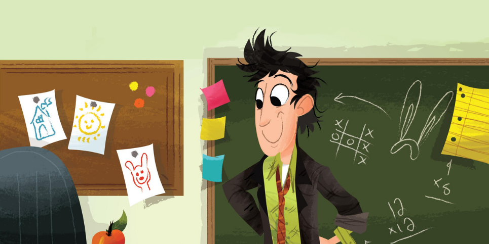 In My Teacher Dad, a young boy is exasperated by the fact that his “teacher dad” does not want to go to school. Teacher Dad is seen, at every turn, avoiding getting out of bed, hanging out in the teacher’s lounge chewing gum, skating around, wanting to read comic books all day, and rolling around in the grassy playground. If the students are to learn anything, the son has to take over teaching the classroom of kids. An illustration on the chalkboard shows two words—irresponsible and harebrained—and the boy’s pointer stick is hovered over “irresponsible.” Don’t expect any patriarchy in this tale either—Mom is a police officer and clearly holds authority within the household. When Dad worries that his son will let Mom know that he has not been toeing the line, some progress is made. Will it be enough to get Dad into the classroom though?