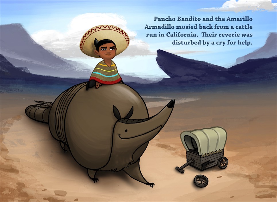 Pancho Bandito and the Amarillo Armadillo is an epic Western tall tale about friendship that’s a hoot to read aloud. Pancho Bandito is a giant kid cowboy who longs for his own horse. He travels to Texas to sell cattle but runs into the monstrous Amarillo Armadillo. Can Pancho save Fort Worth from the beast and make a friend along the way? This Western kid’s book is chock full of humorous action & adventure with a wily animal. The playful language and gorgeous landscapes make it a rollickin’ read for grown-ups and young’uns alike.